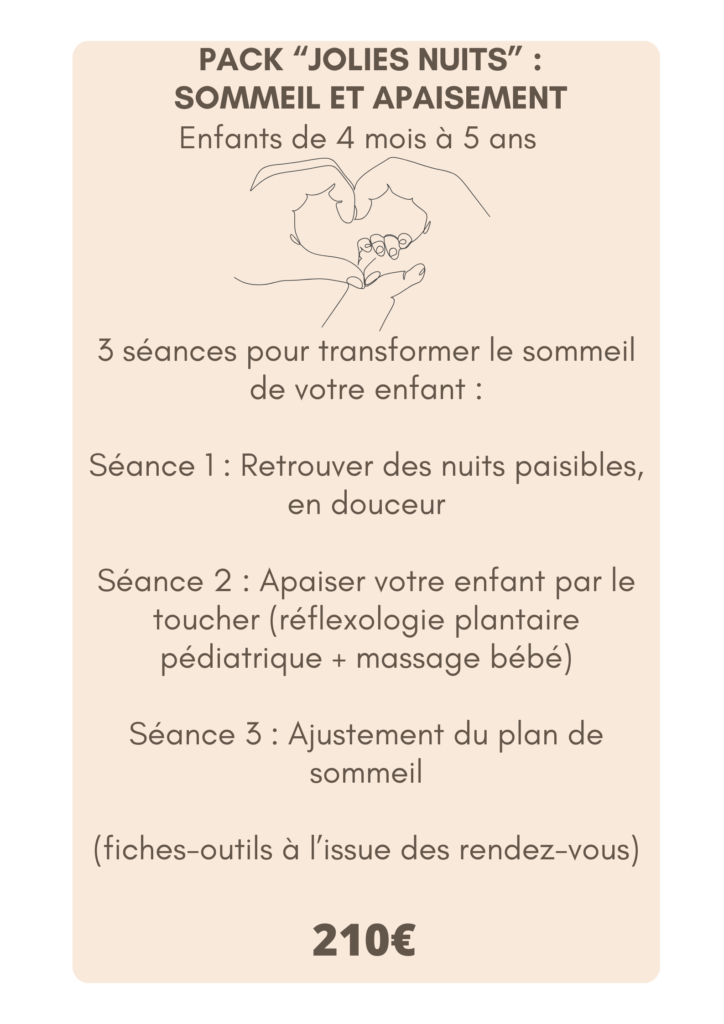 Pour le pack “Jolies Nuits” — Sommeil & Apaisement et le pack Naissance Sereine, la réservation se fait par mail à joliesnuits@proton.me